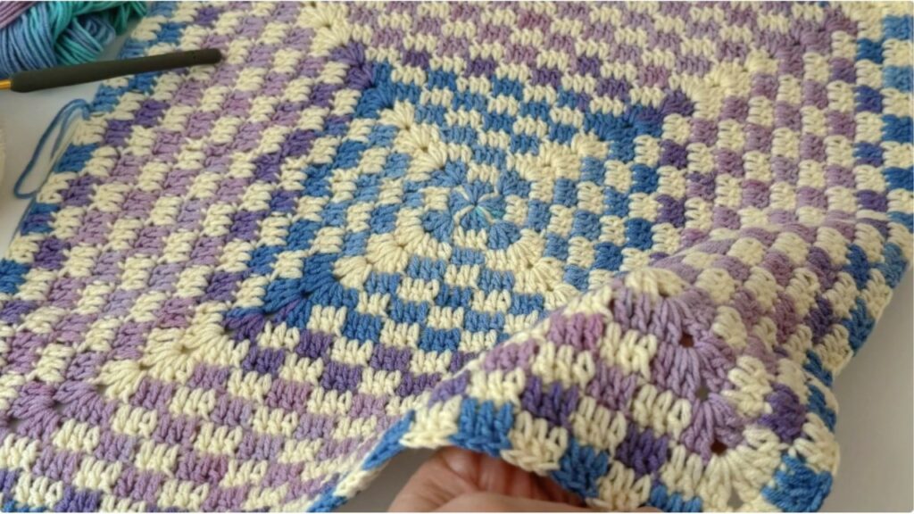 - Baby blanket 70 × 90 cm → ~7 × 9 motifs = 63 motifs.