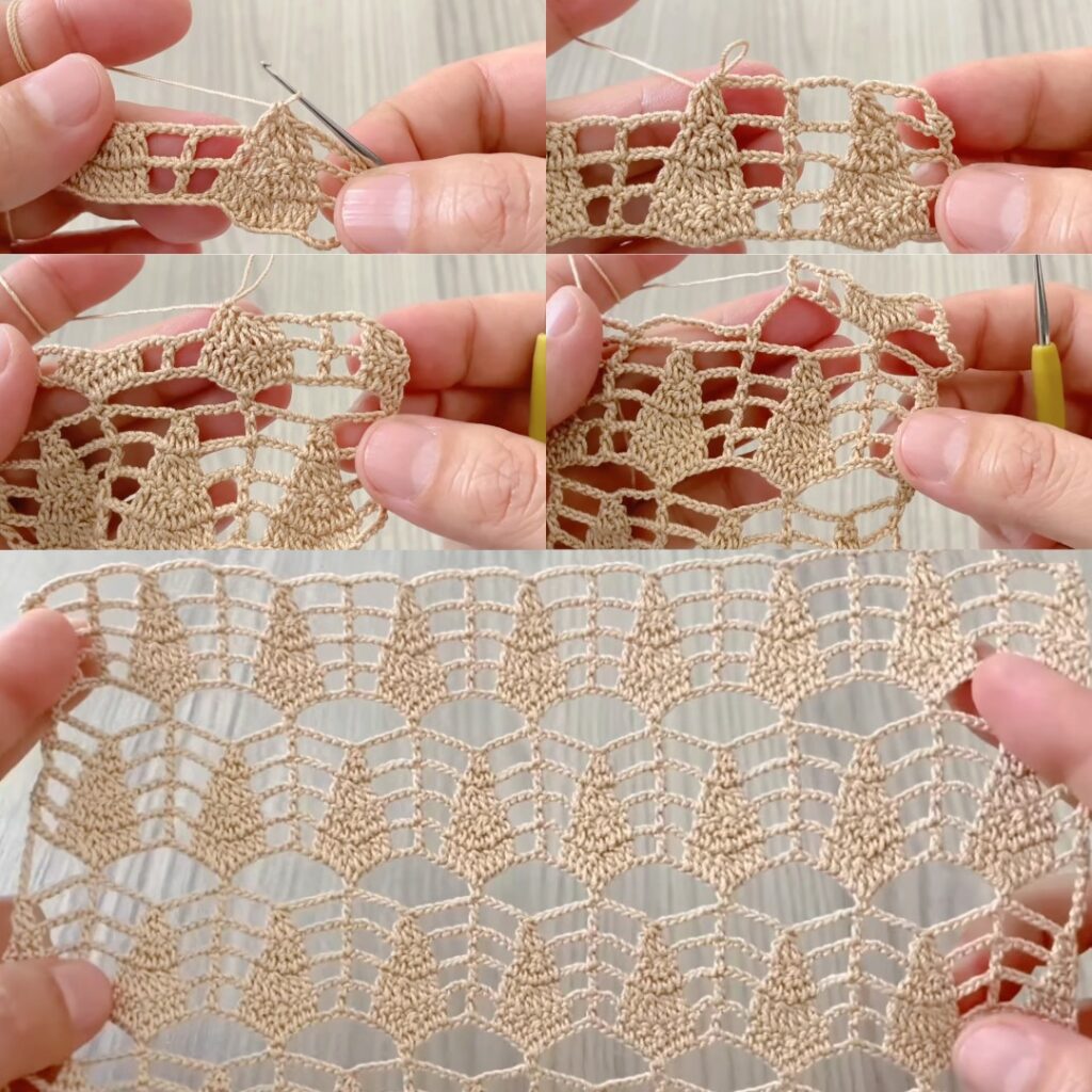 skip 2 sc, 5 dc, skip 2, sc). - Ribbed band (good for garments): sc round → 3–4 rounds hdc in BLO.