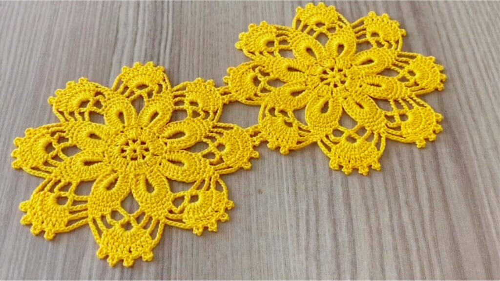 - If the motif cups: use a slightly larger hook or relax tension on the petals and arches.