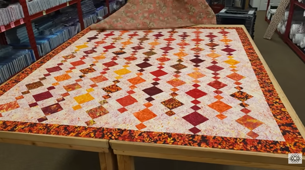- The pattern is very forgiving because it’s strip-pieced; accurate seam allowance and careful trimming are the keys to a flat, even on-point finish.