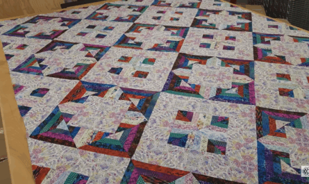 - Trim blocks to exact 9″ square if needed, lay out on point, add side & corner triangles, sew rows, add borders, quilt & bind.
