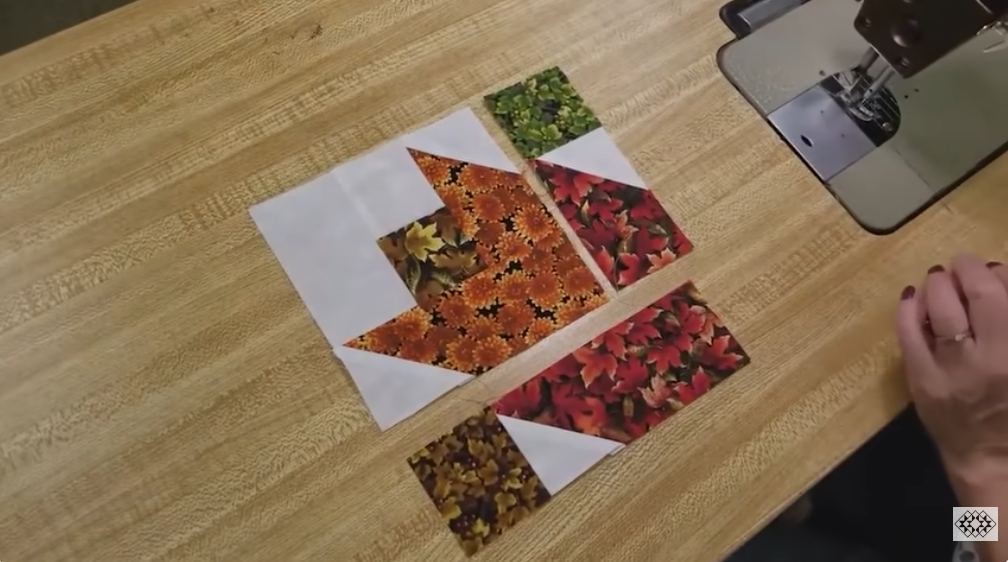 - Sew sub-units together into larger components (for example, join a small colored strip section to background strips to form a quarter or half of a block). The Harvest pattern is built by combining these sub-units into square blocks — follow the block diagram in the pattern or mimic the video’s sequence: strip-piece → sub-cut → assemble.