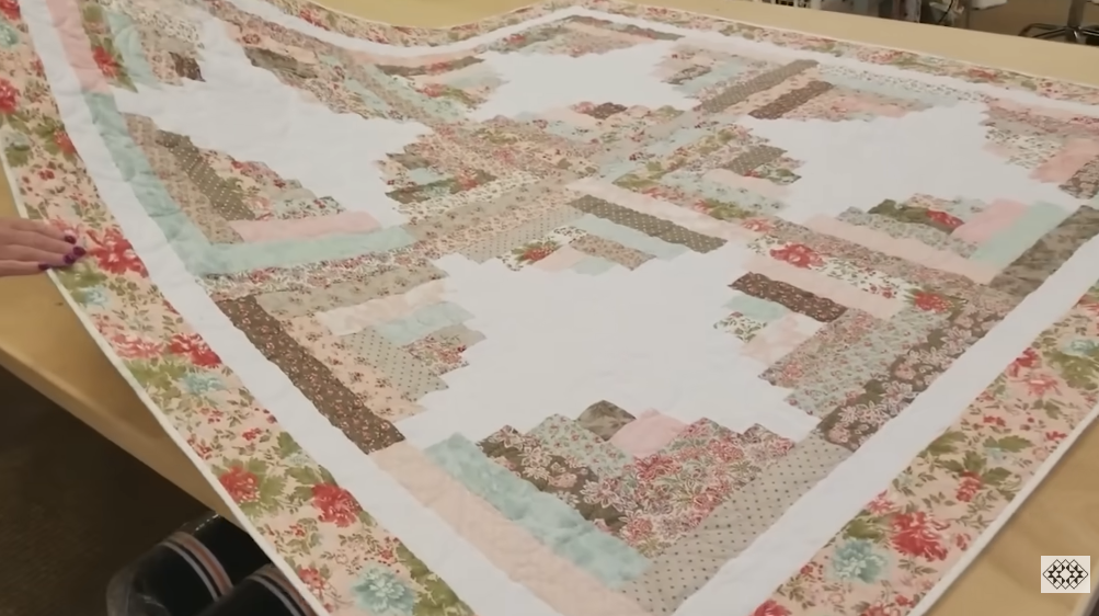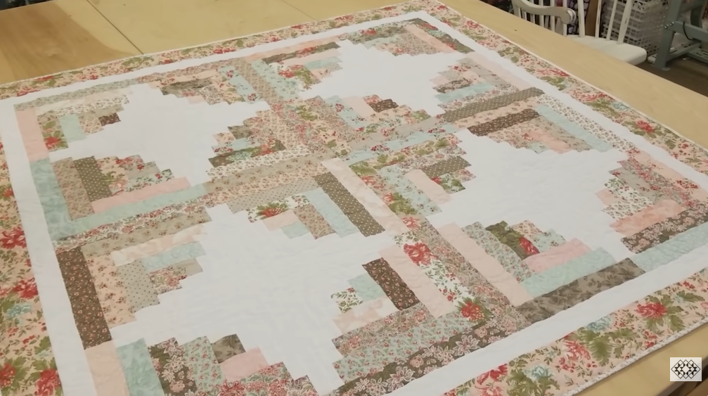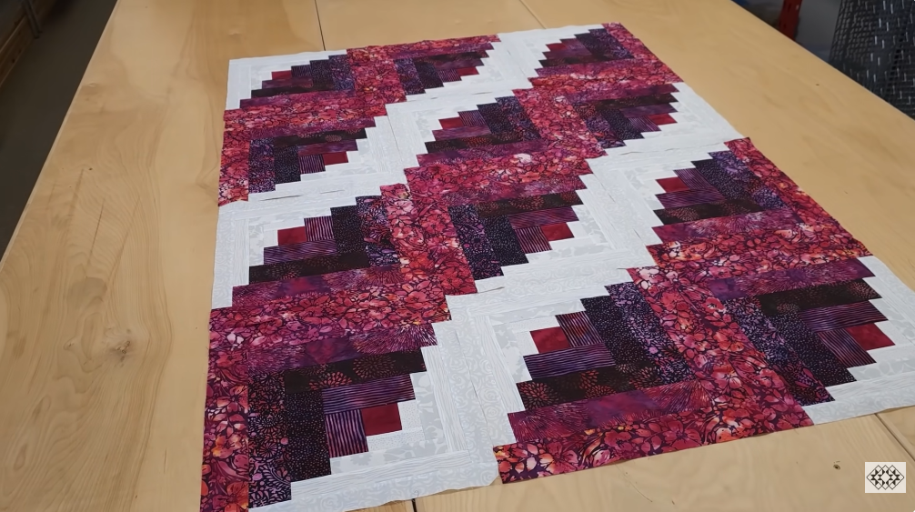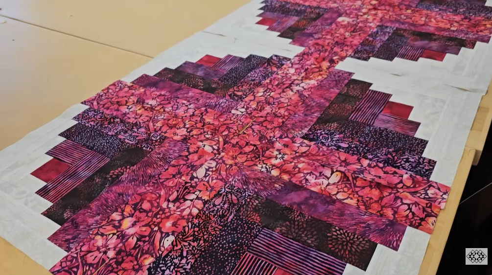 The visual “curvy” movement in this Log Cabin layout comes from how the blocks are built (light vs dark sides), how blocks are trimmed/offset, and especially how the blocks are laid out and rotated in the field — not from sewing literal curved seams. Matt’s demo uses strip-pieced log-cabin blocks (built in numeric strip order) and a strategic on-point / offset layout so the light/dark paths read like flowing curves across the quilt. Follow the pattern and the layout photos in the video to reproduce the same flowing effect.