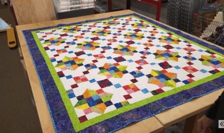 - Diagonal or wavy machine quilting across the whole top can enhance motion without competing with the piecing.