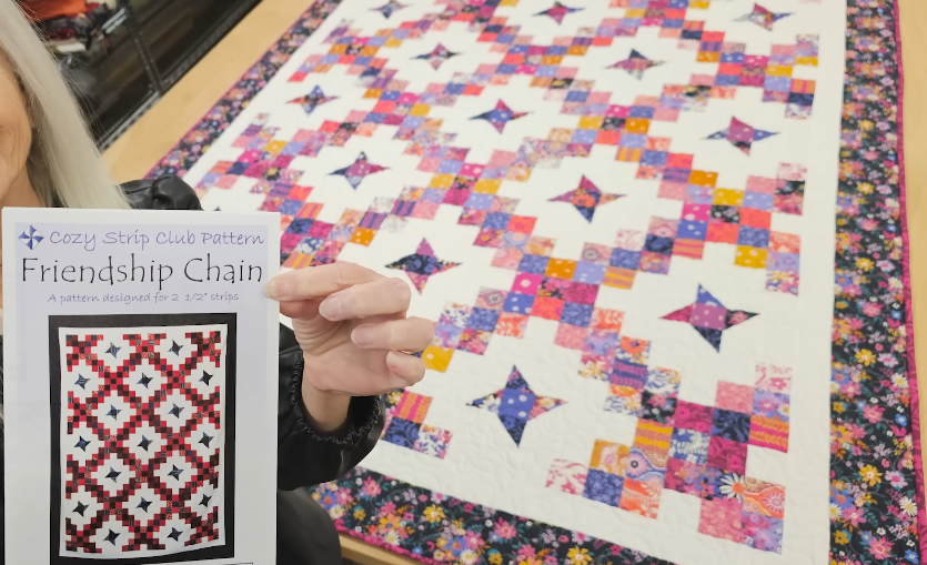 I watched the Jordan Fabrics demo and checked the Friendship Chain pattern page so this follows the exact strip-friendly workflow Donna demonstrates and the pattern’s sizing/strip requirements. Citations show where key pattern facts came from.