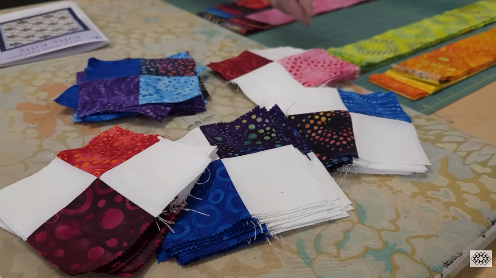 - Technique used in the video: strip-piecing → sub-cut → assemble small patch units in batches → trim → lay out → add setting/borders → quilt. The Jordan Fabrics demo follows that exact rhythm.