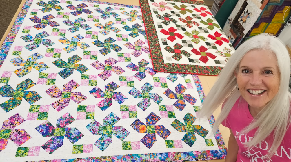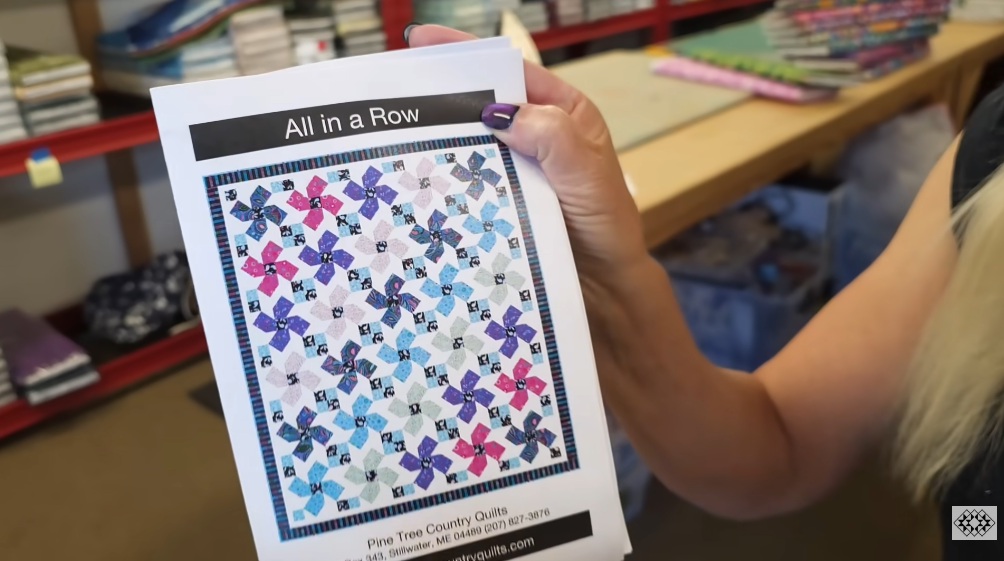 - Pine Tree Country Quilts — ALL IN A ROW digital pattern (56″ × 66″) — pattern page with yardage and specific cutting instructions. Use that pattern for exact block sizes and yardage if you want to match the video quilt exactly.