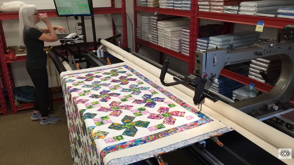 - Quilt by hand or machine. Jordan Fabrics often recommends straight-line quilting to keep the “all in a row” look — stitch in the ditch along rows or choose an even vertical/horizontal straight line pattern to accent the rows. If you prefer free-motion motifs, do that as desired.