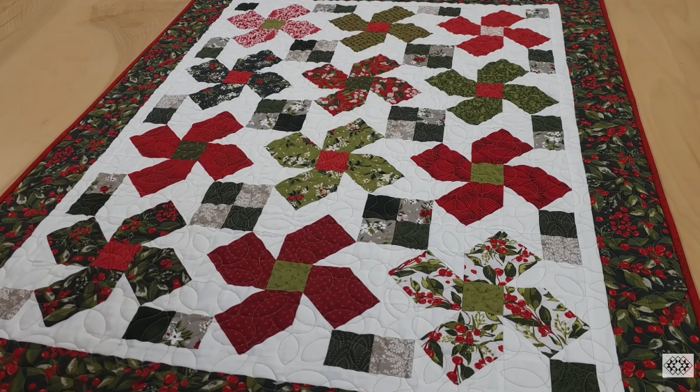 Finished quilt (example): ~56″ × 66″ (pattern size from Pine Tree Country Quilts).