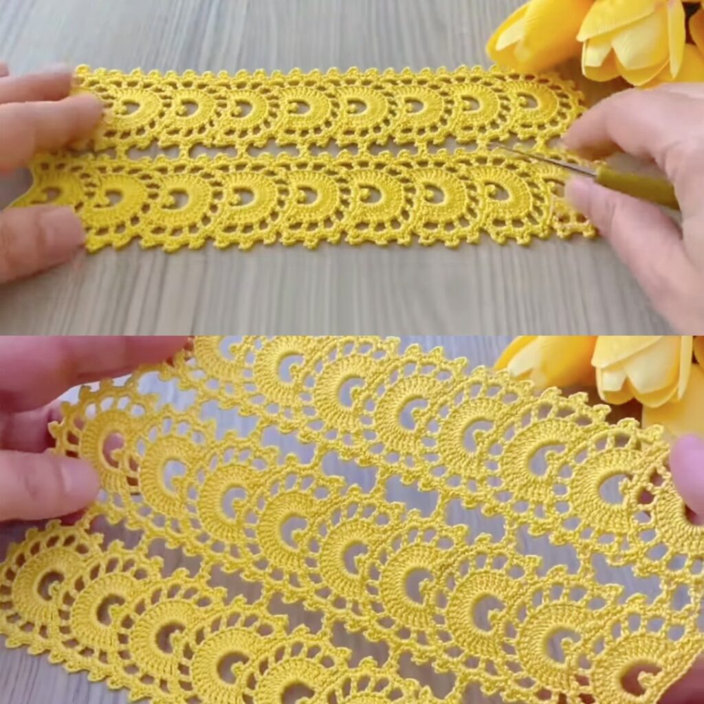💛 Gorgeous Lace Piece — Runner, Shawl, Edge & Intermediate Lace Pattern (step-by-step)