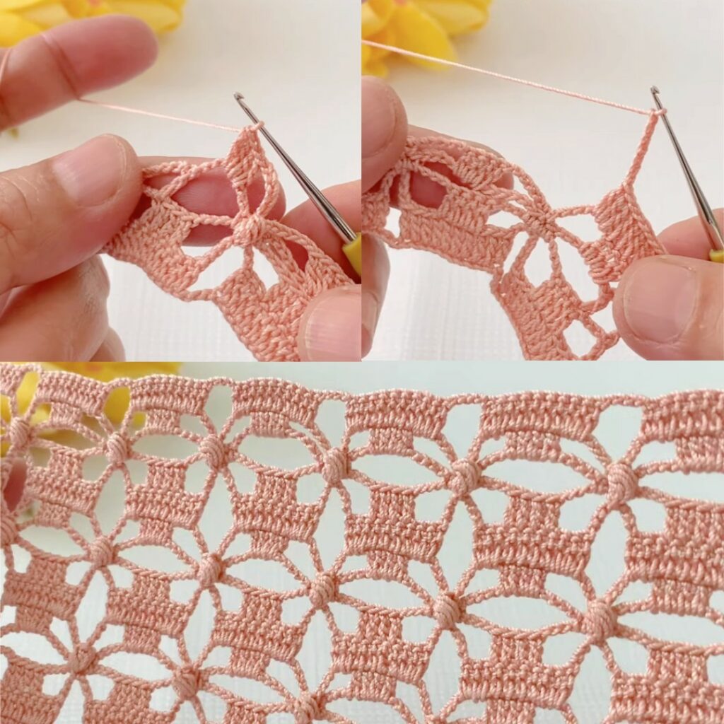 - Bigger motif: use thicker yarn / larger hook, or change 7 dc → 9 dc and ch-7 → ch-9.