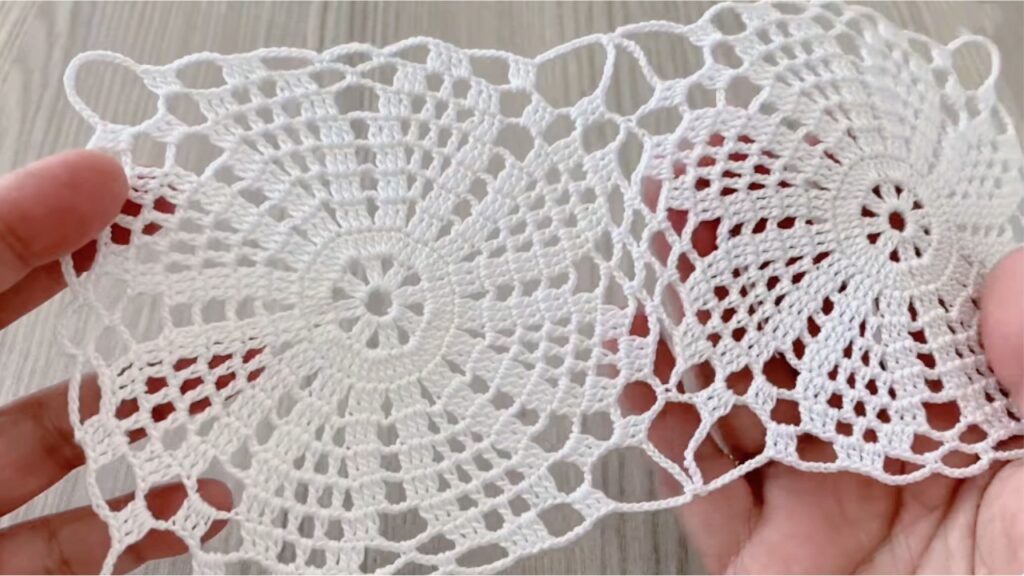 - After joining full piece, work 1–2 rounds sc for stability, then a scallop/picot round to match motifs.