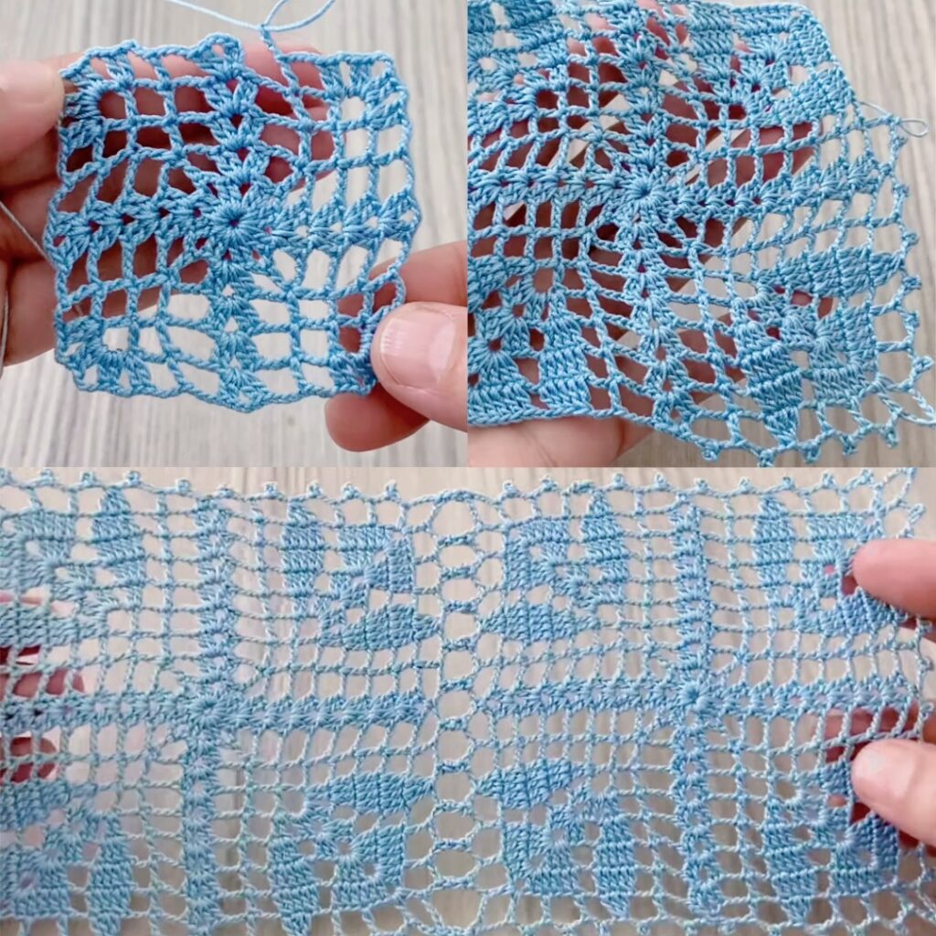 - Shawl / rectangle: 6 Ă— 10 motifs (example).
