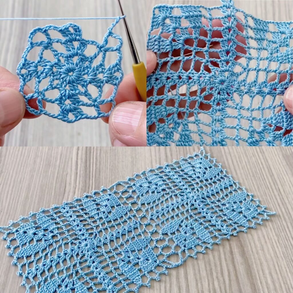 - Cushion / cover: 3 Ă— 3 or 4 Ă— 4 motif square.