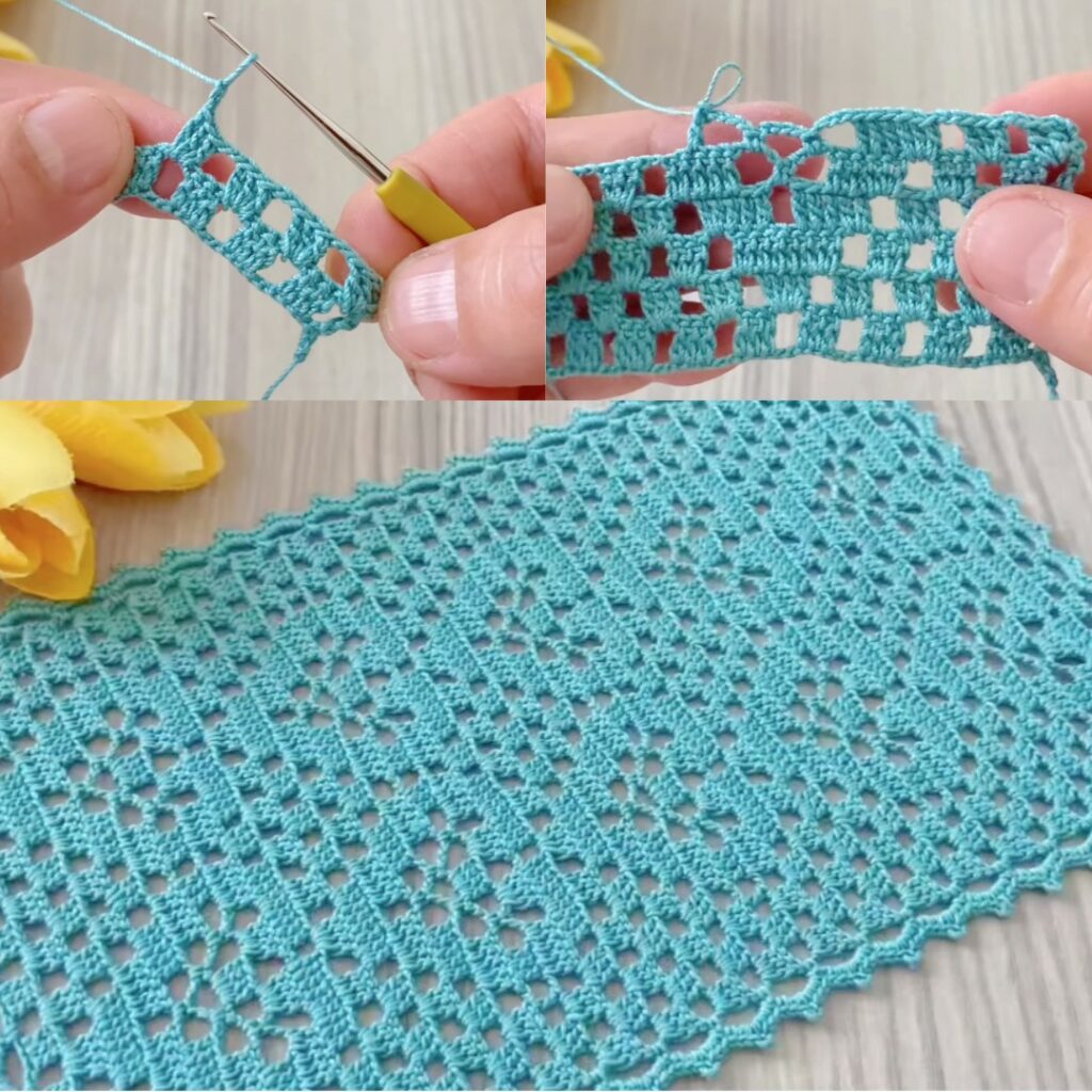 - Runner (1×N or 2×N motifs) with scalloped outer border.