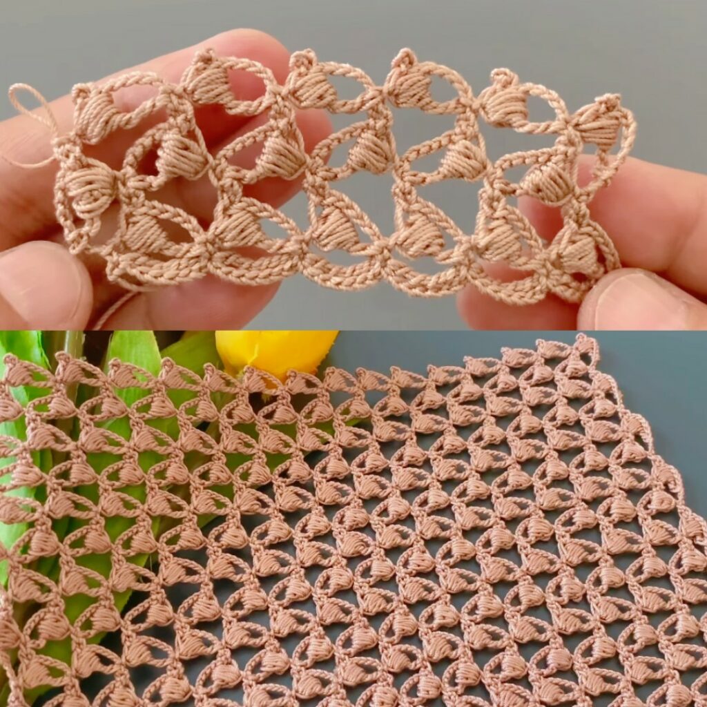 - Scarf / runner: repeat as a single long band and finish both short ends with a picot fringe.