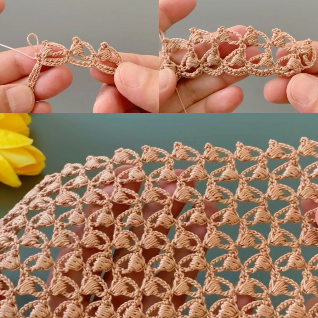 This is a single-row repeat lace you work across a foundation (chain or edge) — perfect for quickly making a blouse panel, a light shawl, or a decorative band. It’s beginner friendly, very repeatable, and you can attach it to fabric or work it as a strip and join rows. US terms.