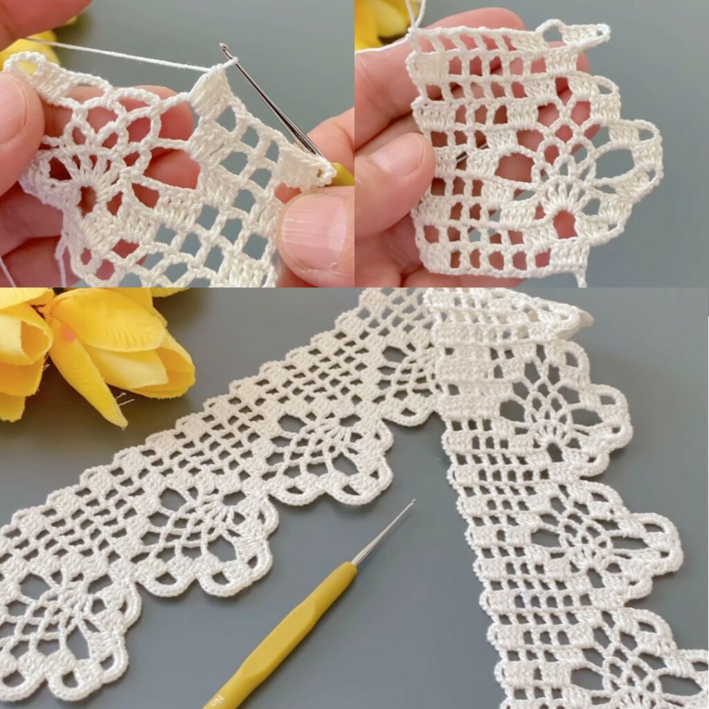 Lovely choice — here’s a clear, beginner-friendly text tutorial you can crochet right away. This creates a repeatable lace edge with pointed leaf-like scallops and tiny picot dots — perfect for shawls, blouses, table runners, towels or as a stand-alone trim strip. Written in US terms with checks, corner instructions, blocking/tidy tips and quick variations.