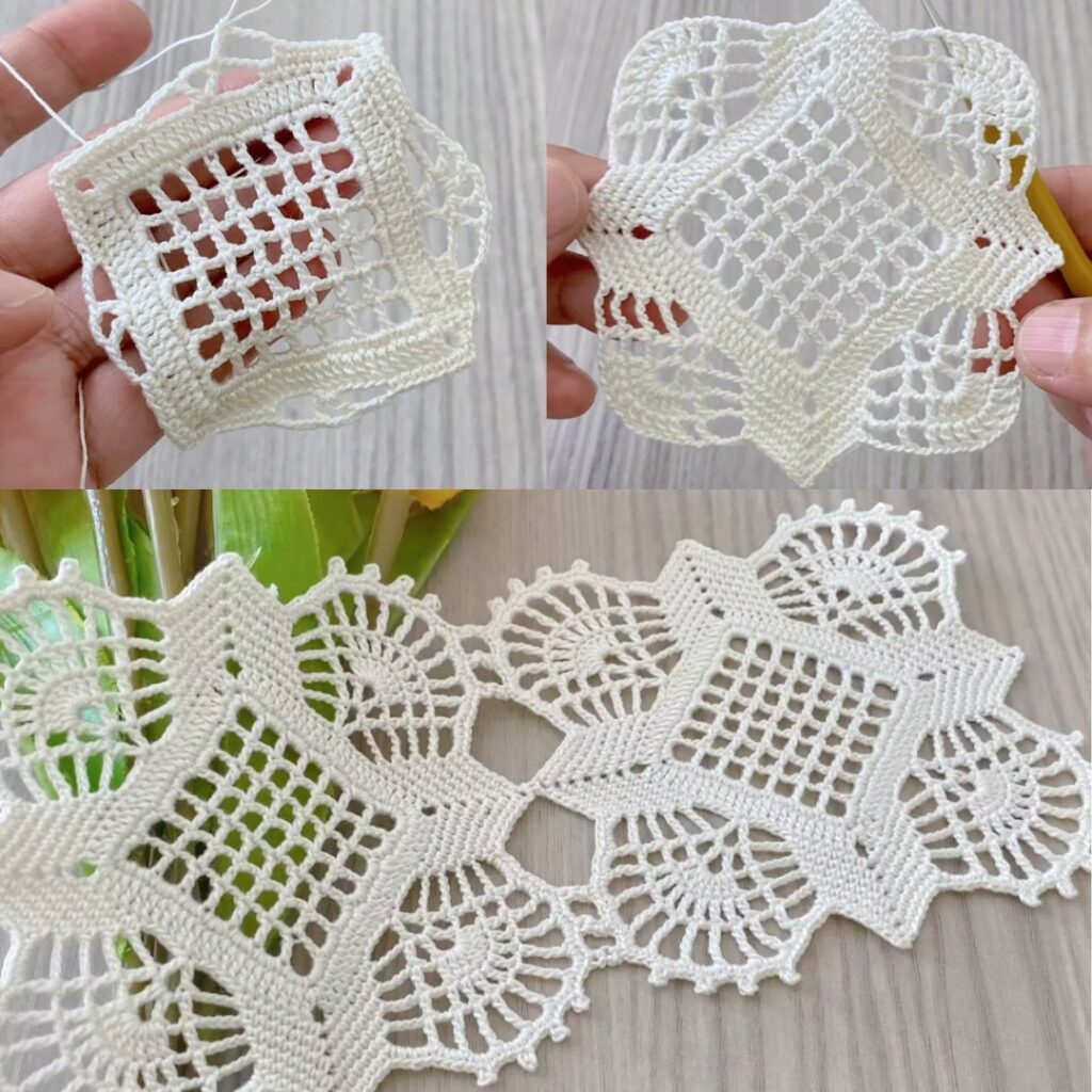 Hello! below is a clear, beginner-friendly, round-by-round text tutorial that produces a delicate snowflake-style medallion converted into a joinable square. Uses US terms. Counts/checks after key rounds so you can verify as you go. Perfect for ornaments, runners, shawls or a lacy blouse when joined.