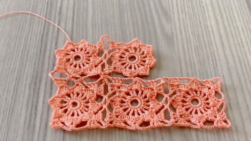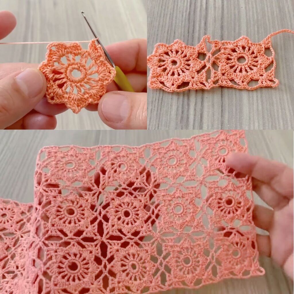- Join into panels: use the outer round as a join round — when making a new flower, replace some of the outer sl sts with sl sts into neighboring flower stitches to join-as-you-go (JAYG).