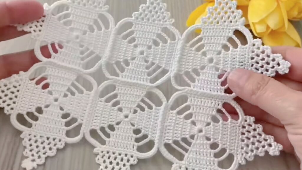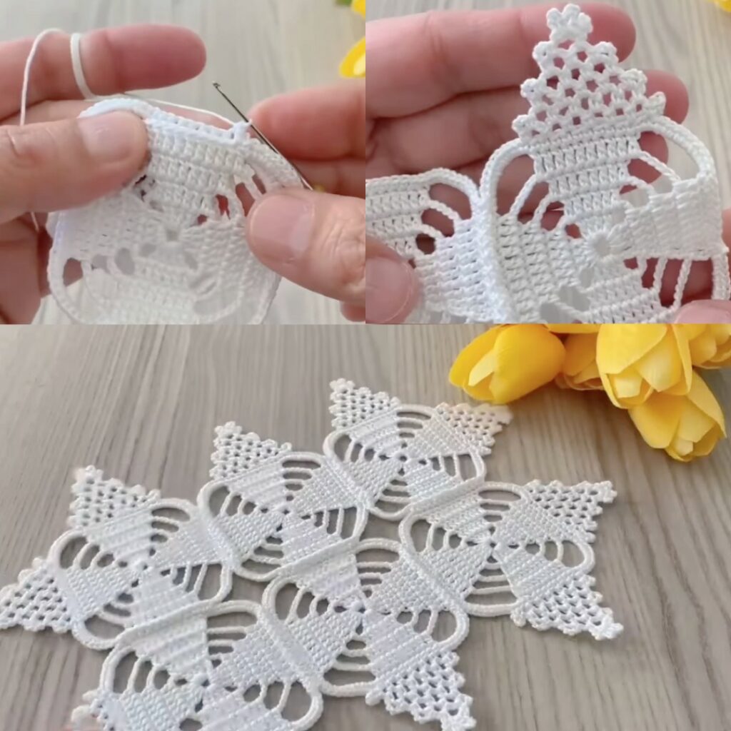 This motif is worked in rounds, starts from a small center, and quickly forms a beautiful, simple lace square, perfect for many projects.