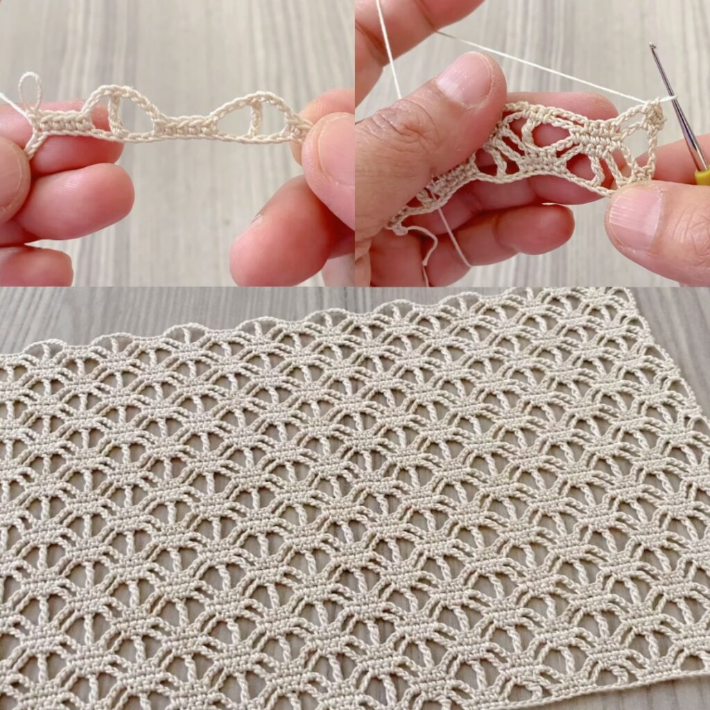 👉 Repeat Rows 1 – 3 continuously until your fabric reaches the desired length.