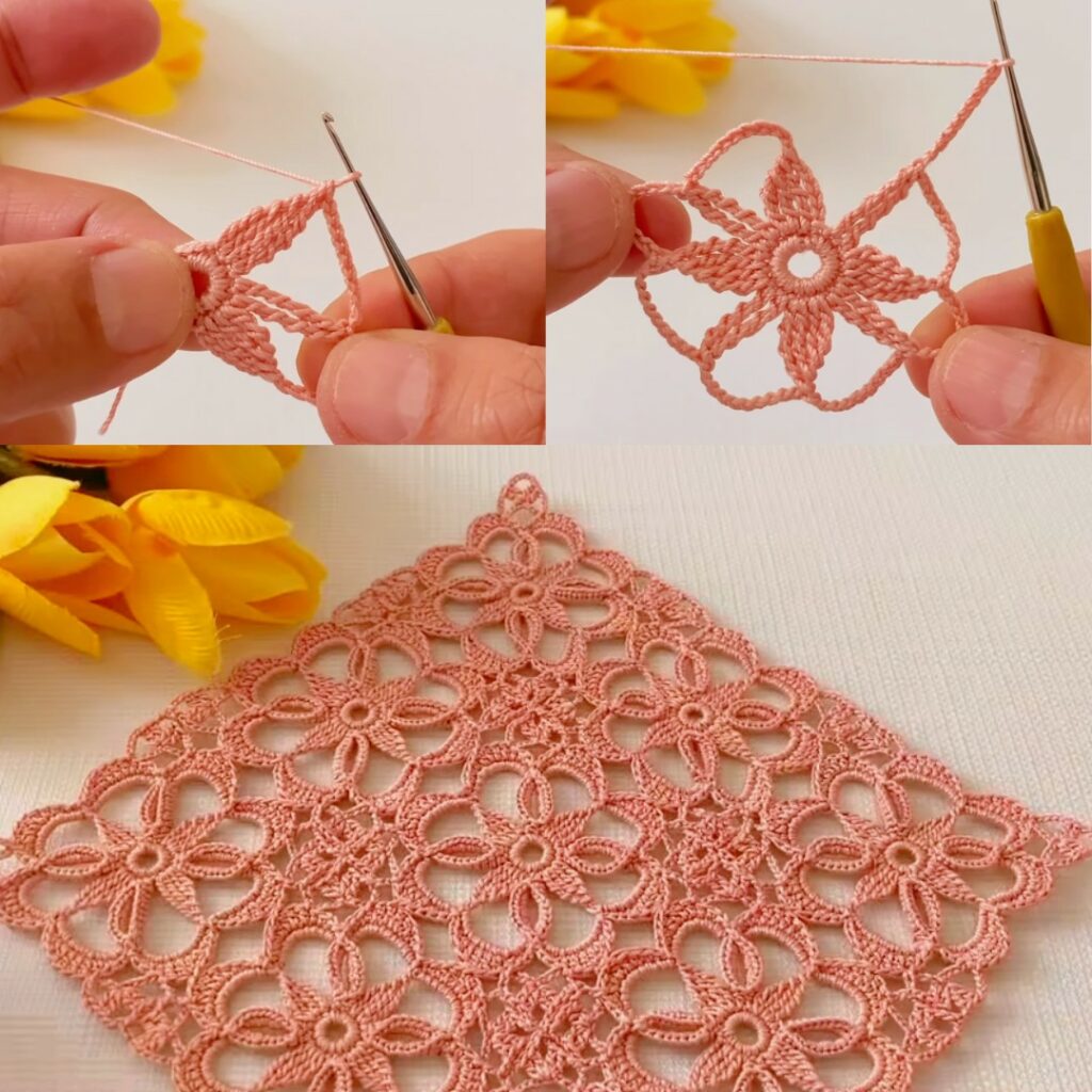 This square motif looks rich, elegant, and professional, yet it is made using basic stitches only.