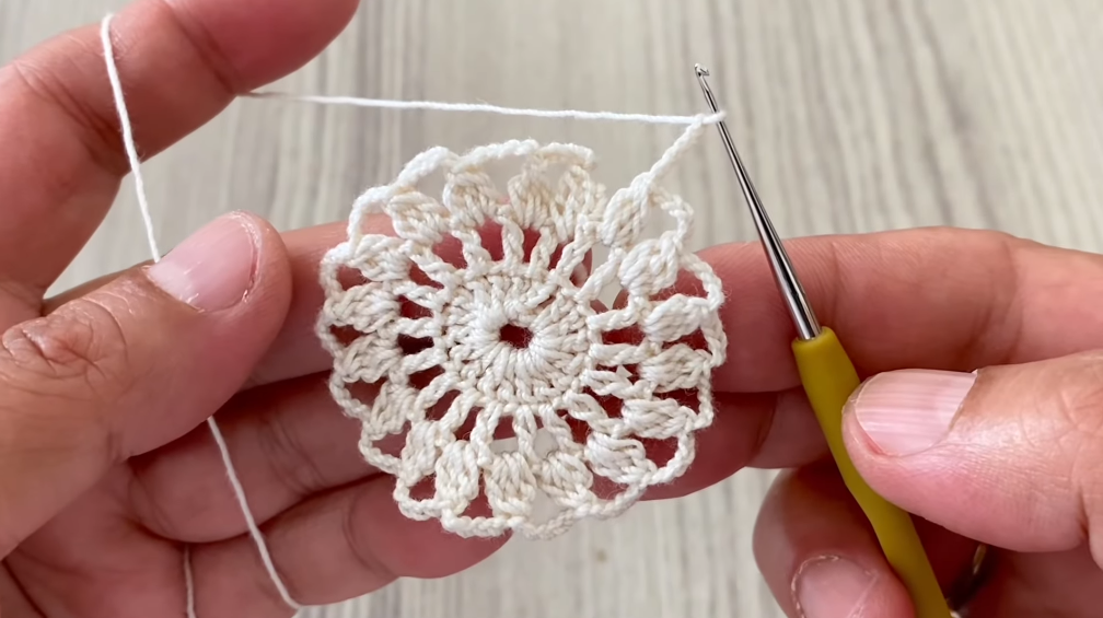 Example finished motif size: ~10 cm (4″) blocked — your size may vary with yarn/hook.