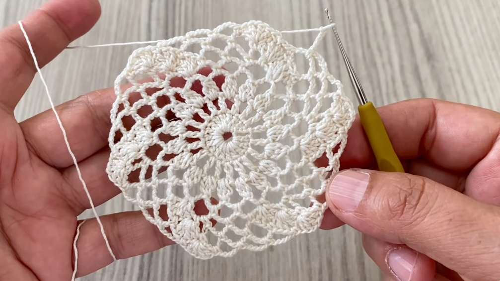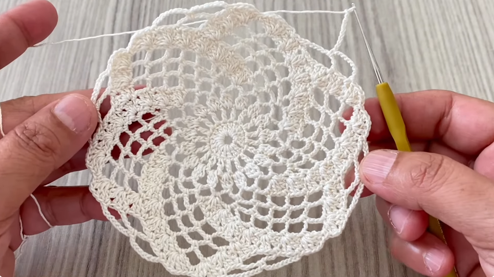👉 The motif now has a rich pineapple/lace look — keep visual balance.