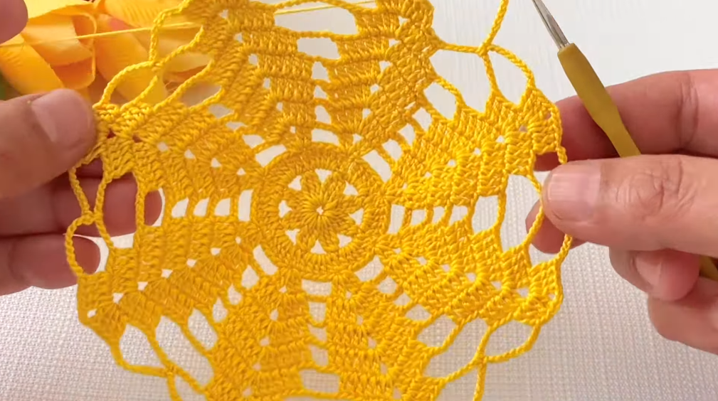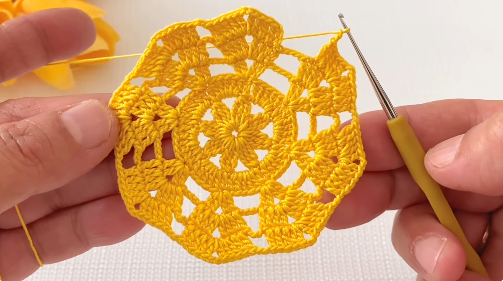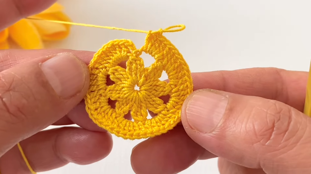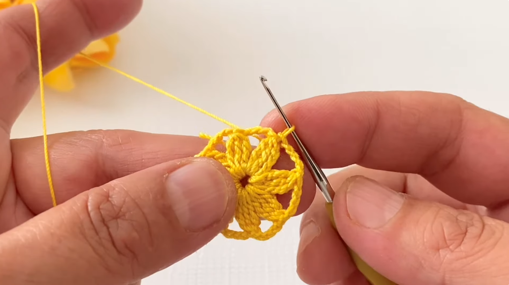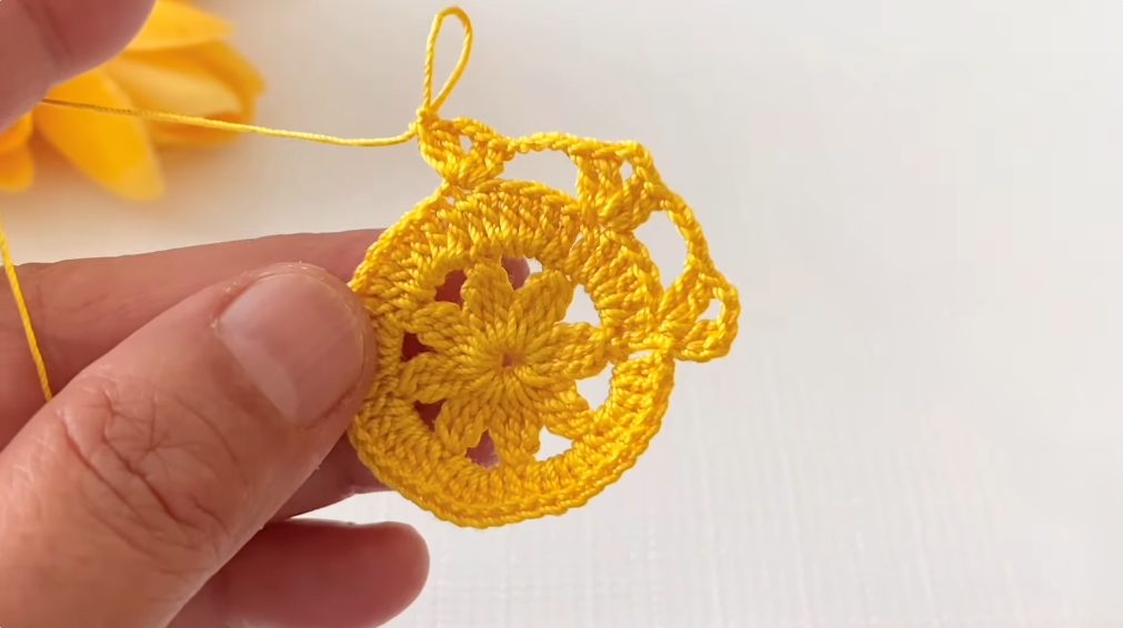 - Sc in the center of the motif (ch-3 space).