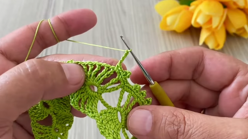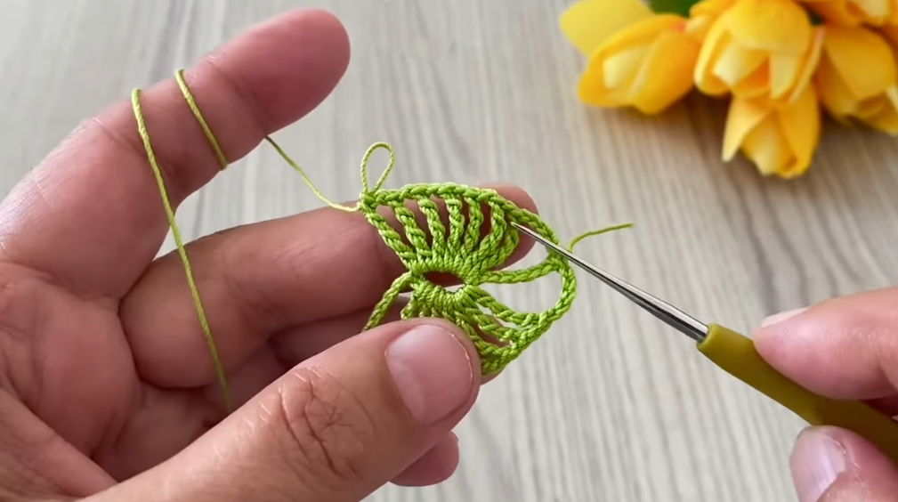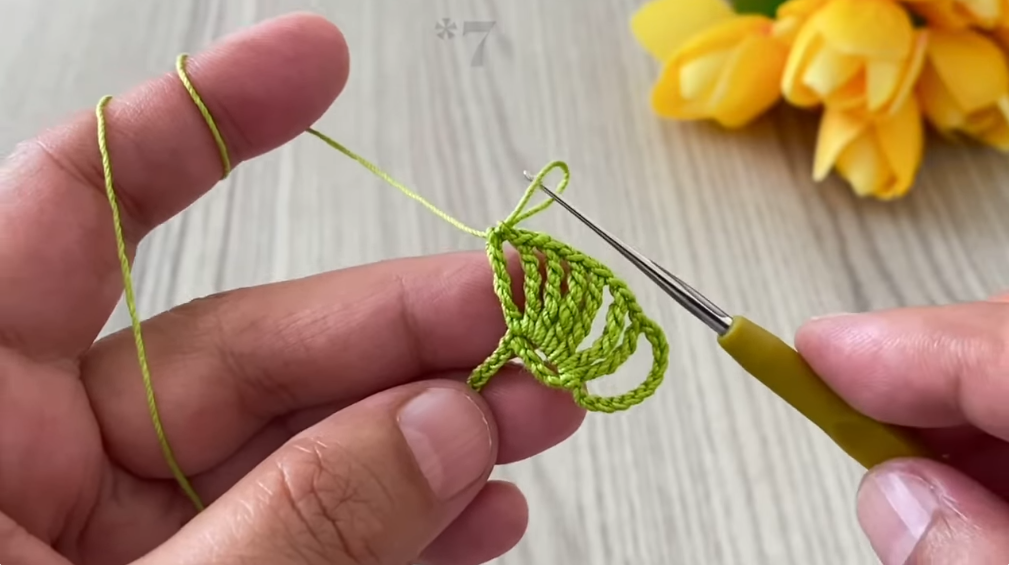 - Hdc into the top of the turning chain.