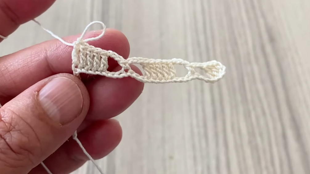 - Sc in next ch-2 space