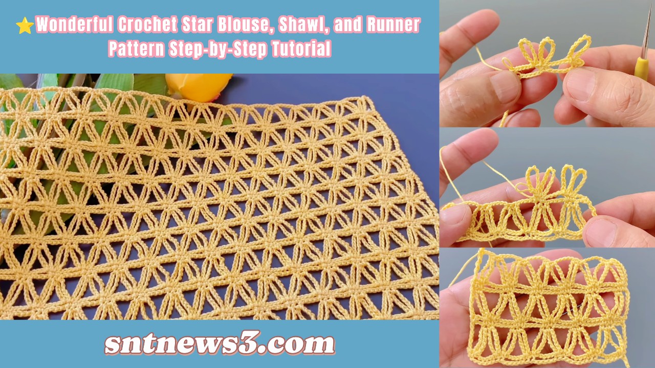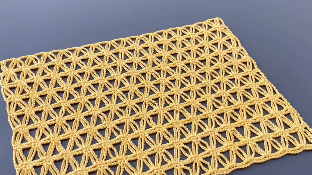 This stitch pattern is a textured star-inspired motif, worked in rows to create an open-lace panel that repeats across the width of your project. It uses combinations of clusters and open spaces to form a pattern that looks like stars or shells when repeated.