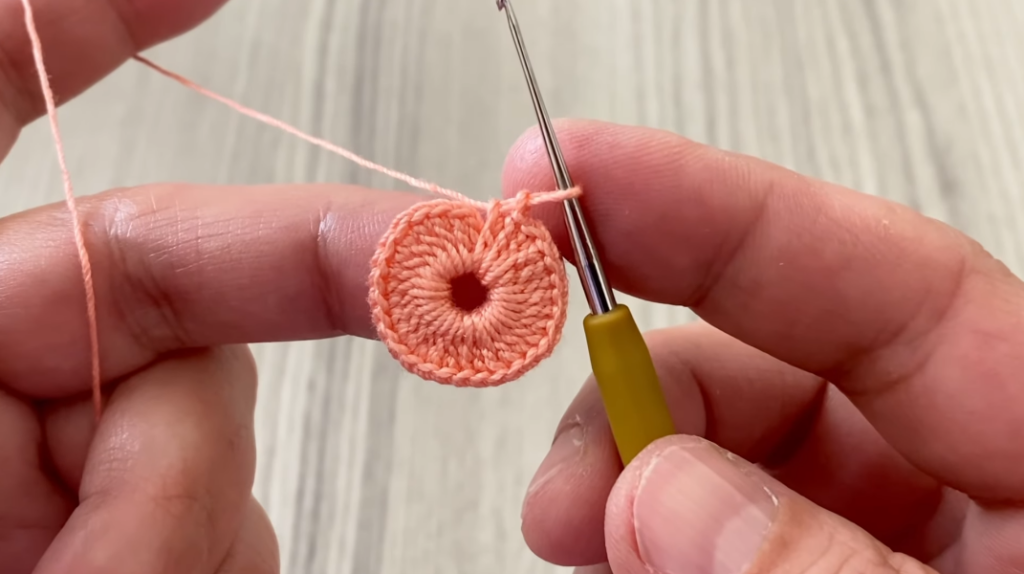 This lets you pull the center tight so no hole is left. - Ch 3 — this counts as the first dc of this round.