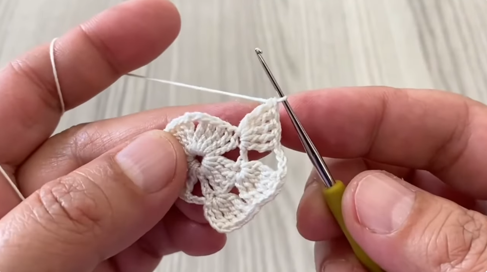 - Ch 3, sl st back into 2nd ch from hook — this creates a small picot.