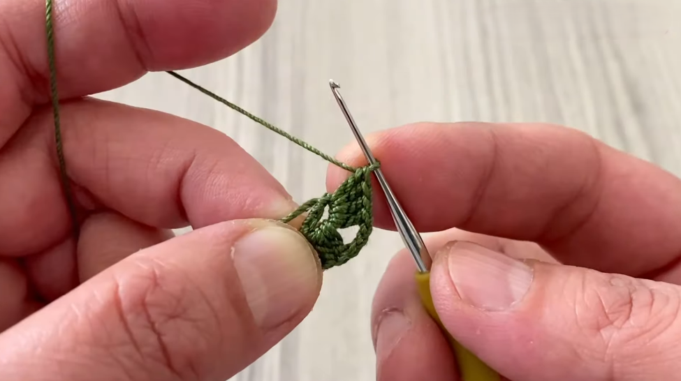 - Ch 3, sl st into 2nd chain from hook — this makes a picot.