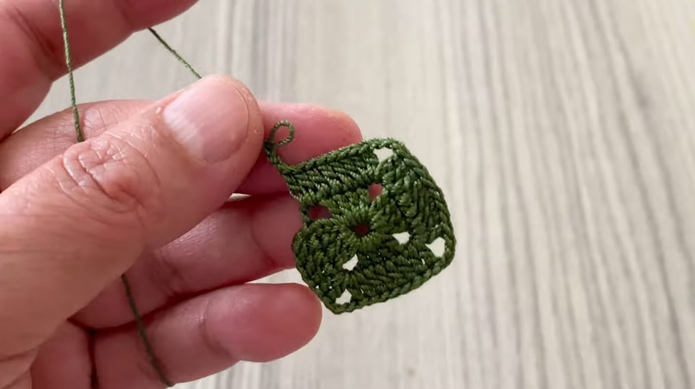 - Sl st into the first chain-4 space.