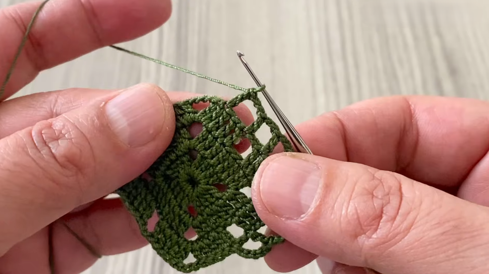 ✨ You now have chain-4 spaces all around creating a lacy effect.