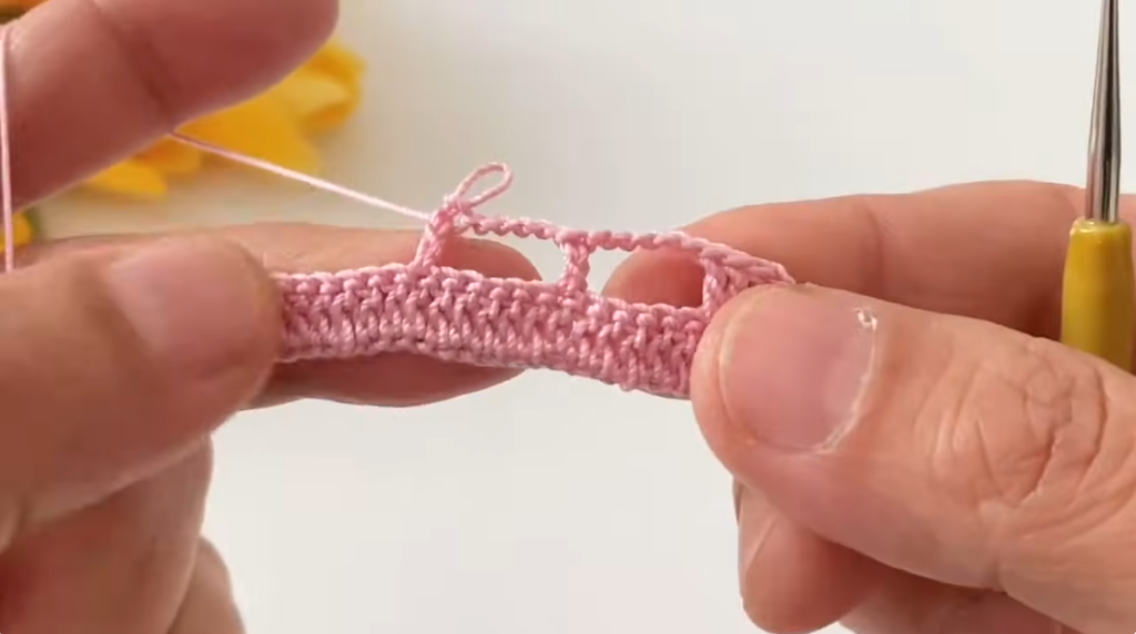 - Skip 2 stitches.