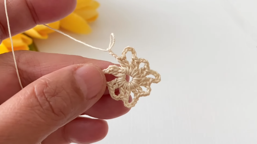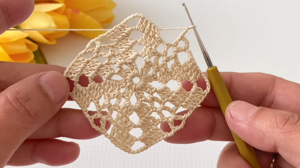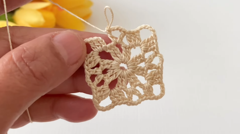 - Make 1 single crochet in the stitch between motifs.