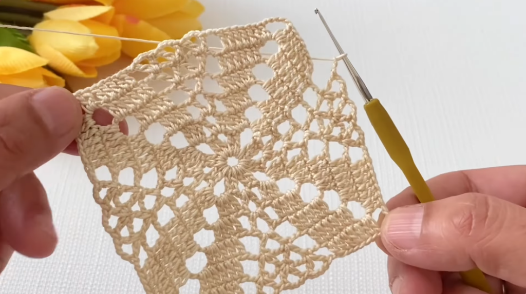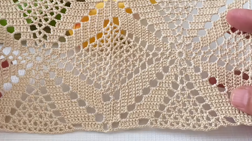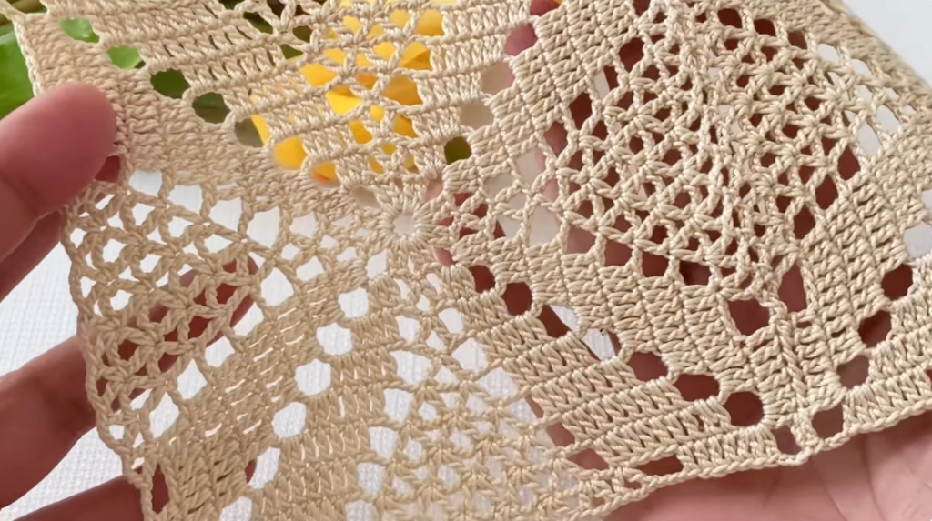 This tutorial shows a repeating crochet motif pattern made with chain arches and shell clusters. The motif can be repeated across rows to create table runners, blouses, shawls, or decorative panels.