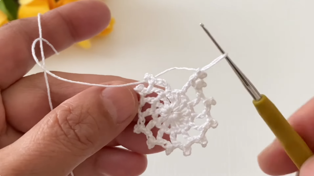 - Slip stitch into the chain-4 loop.