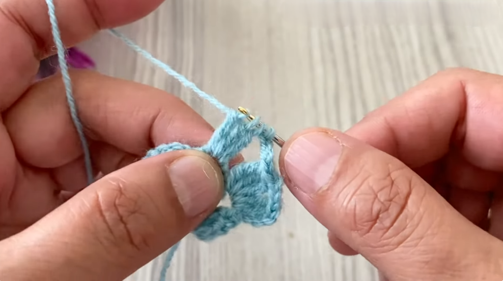 ✔ Increase at center (2 tr, ch 2, 2 tr)