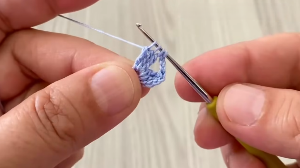 - Expand with (2 dc, ch 2, 2 dc)