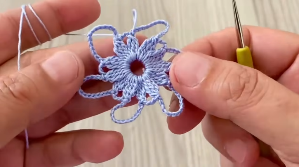 - sc between petals