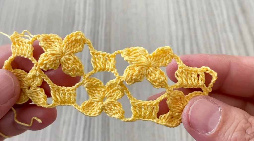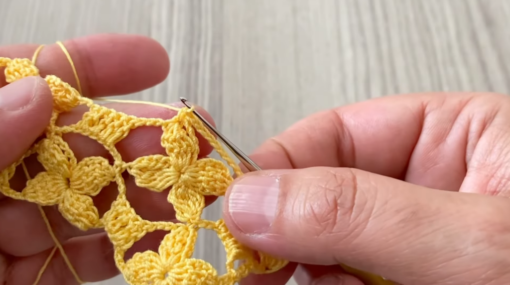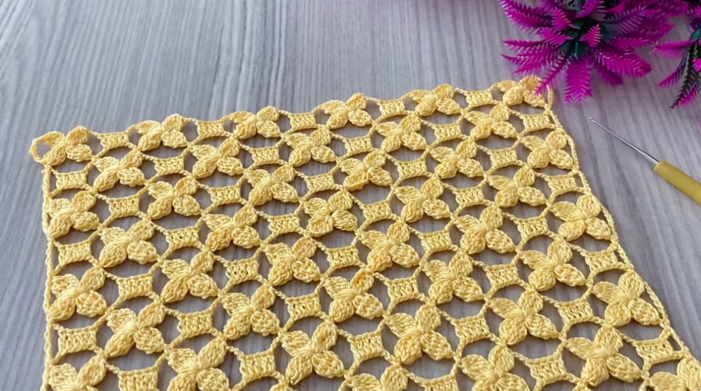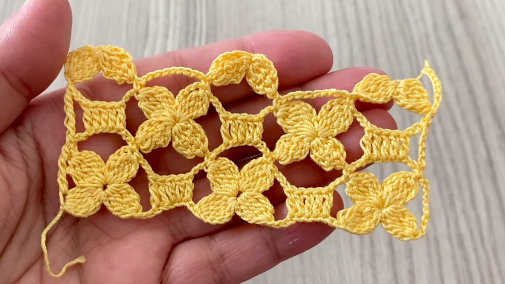 👉 Flower-style crochet patterns commonly combine basic stitches (sc, dc, tr) to form petal-like clusters and layered textures