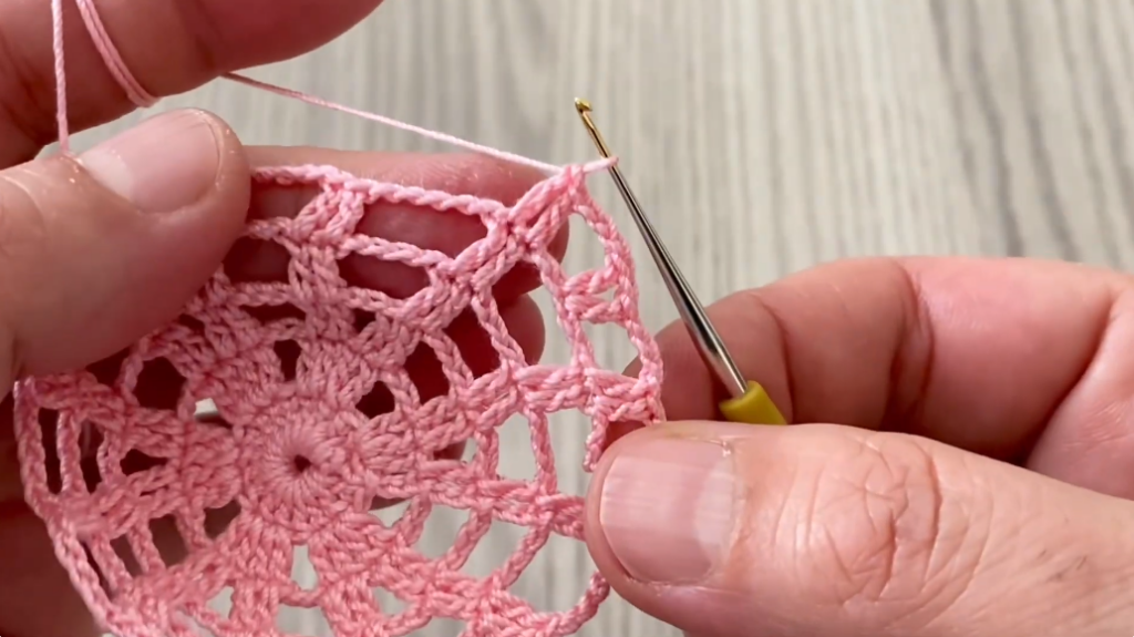 👉 Motifs are usually built from a center and expanded outward with increases and decorative stitches
