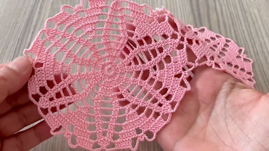 👉 center → chain loops → tall stitch petals → outer lace frame - Uses: