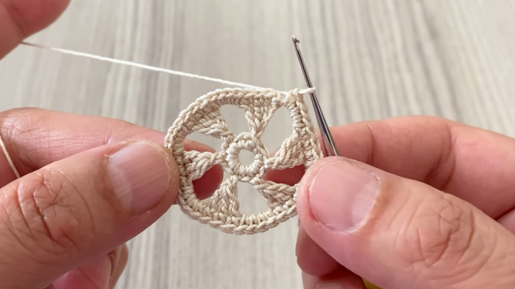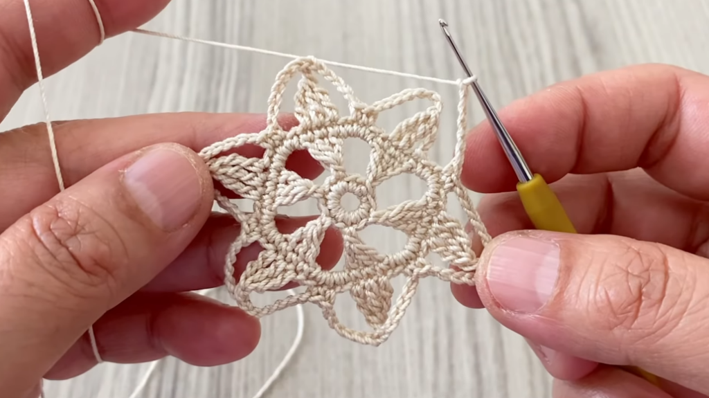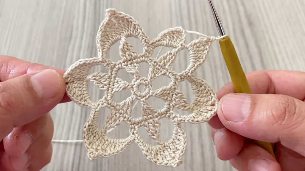 👉 This type of motif builds outward in stages: center → petals → shaping rounds