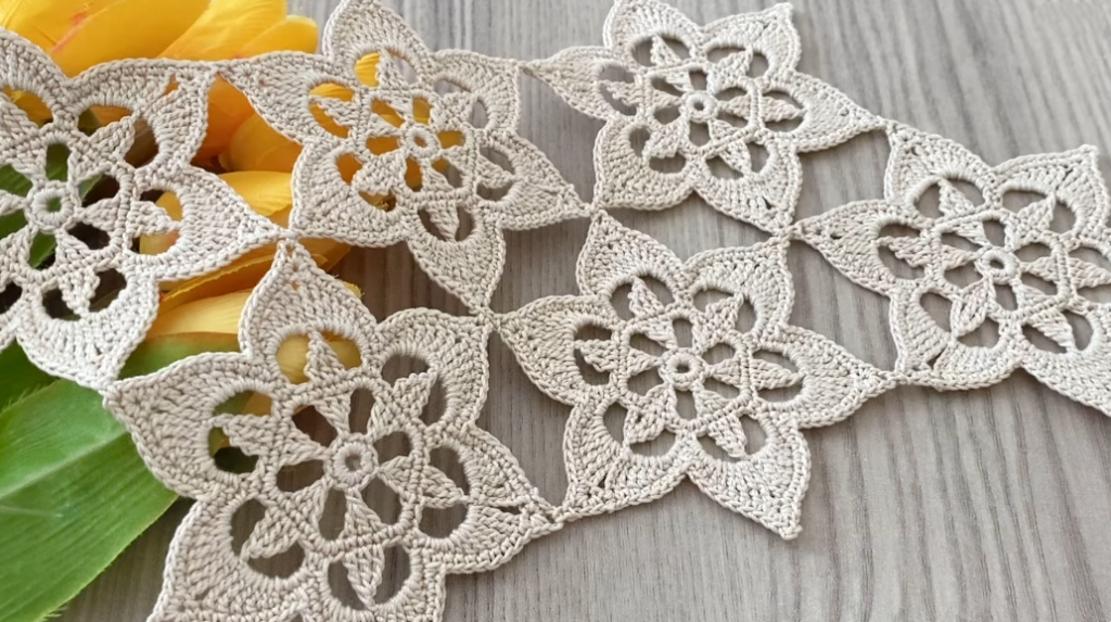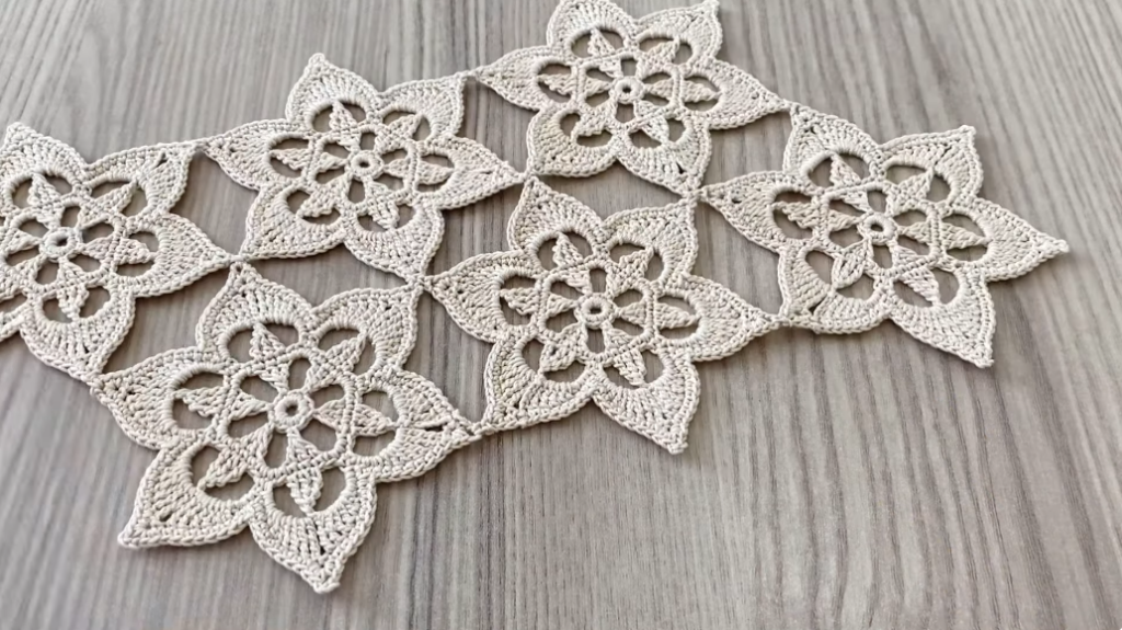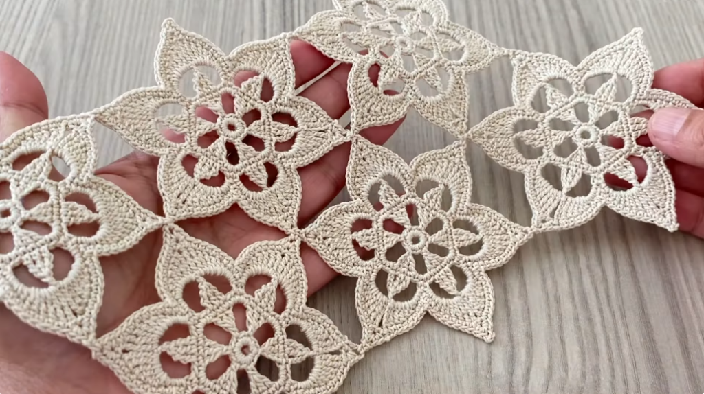 👉 center → chain loops → layered petals → outer square/lace - Uses:
